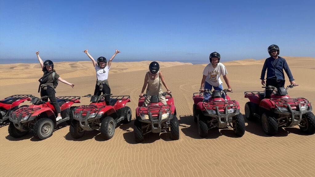 Disfruta de una emocionante excursión en quad por las impresionantes dunas del desierto cercanas, donde podrás sentir la inmensidad del paisaje y la energía del desierto del Namib. Duración de la excursión: según el recorrido elegido. Ubicación: dunas del desierto cerca de Swakopmund, Namibia.