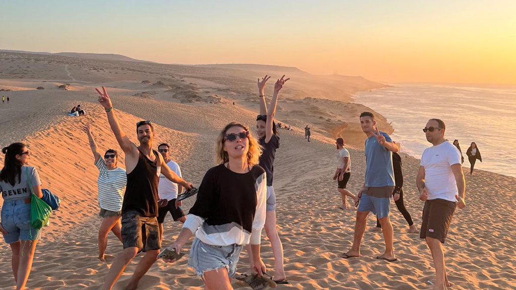 Una excursión inolvidable, a unos 60 km al norte de Agadir hacia la bahía de Immensouanne ( lugar famoso por tener la ola derecha más larga de Marruecos ) te encuentras con dunas desérticas donde puedes rodar y deslizarte con una tabla de surf sin aletas ( Sand Board Riding )
