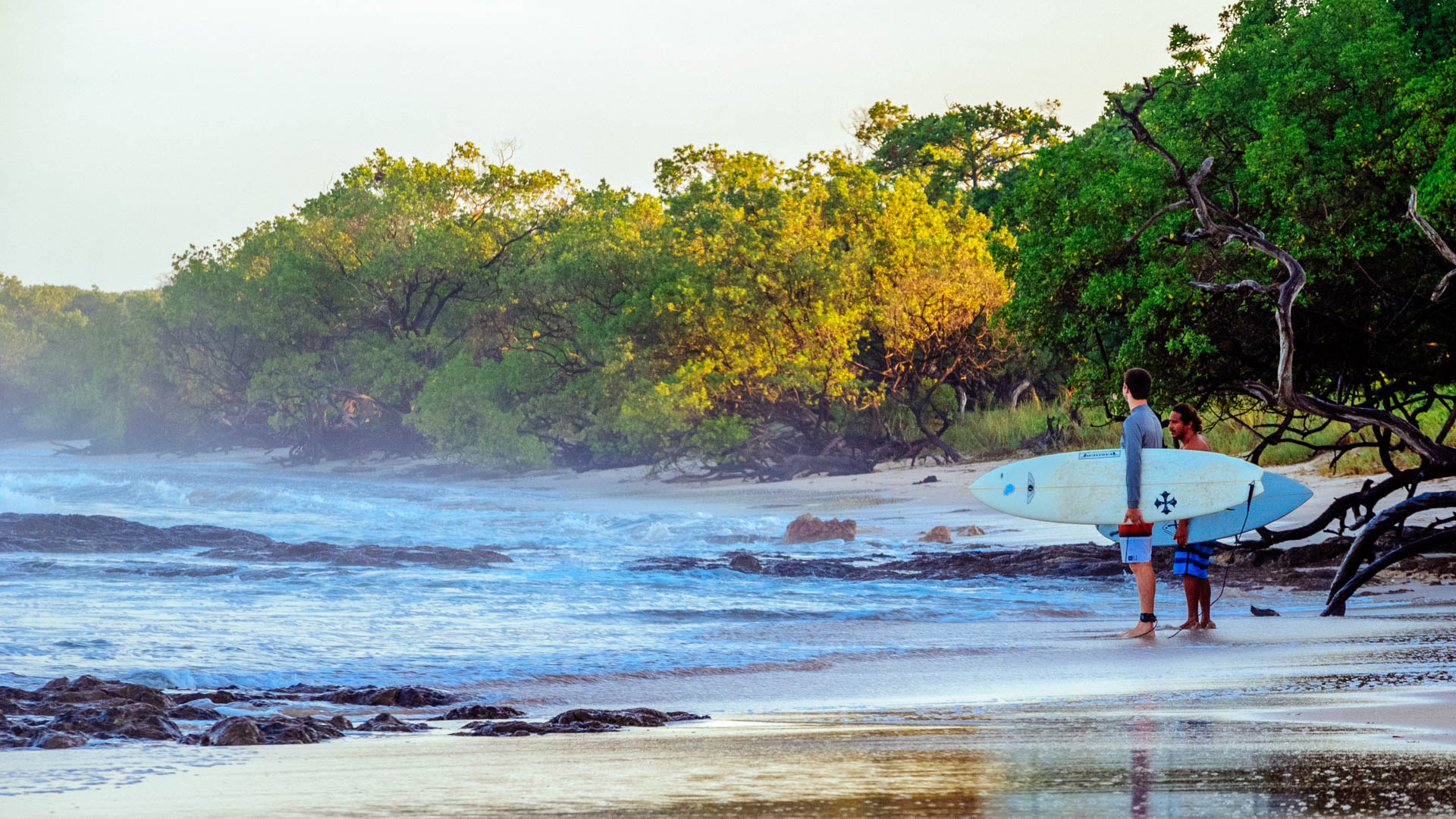 Varios puntos son fácilmente accesibles a pie, joyas ocultas como Playa Langosta, Playa Grande y Playa Negra están a sólo unos minutos del campamento. No importa si eres un principiante absoluto o un surfista experimentado, todos los días te llevaremos a surfear a los mejores puntos de la zona, en función de tu nivel, el viento y las condiciones del mar.